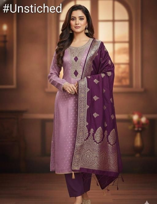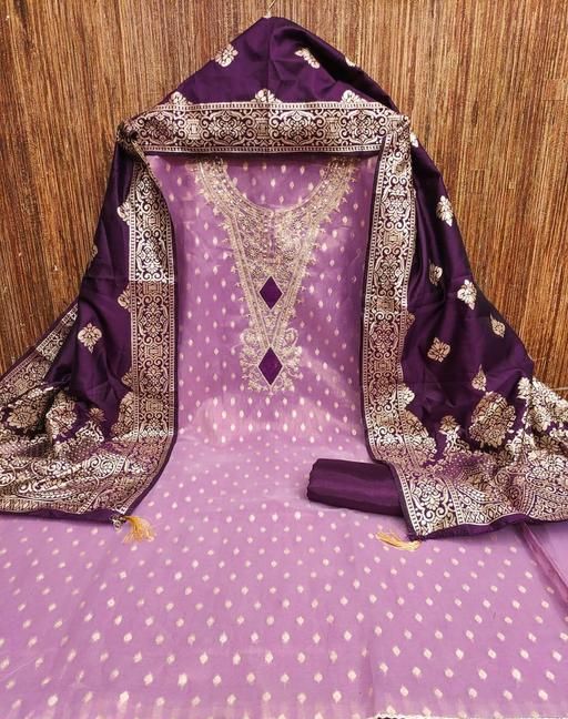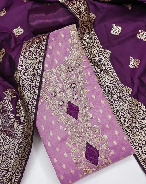 Name: Bliss Flair Purple Heavy Chanderi Jacquard Butti Embroidered Dress Material suit for women With Heavy Neck And Jacquard Border Work. (Unstitched)Pakistani Suit,Salwar Suits.