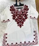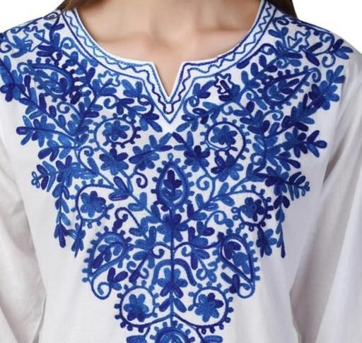 Made from high-quality cotton/linen (or specify fabric), this kurti features intricate thread embroidery in classic floral and paisley patterns, adding a touch of timeless grace. The short length makes it perfect for a fusion look — pair it with jeans, palazzos, or skirts for effortless style.