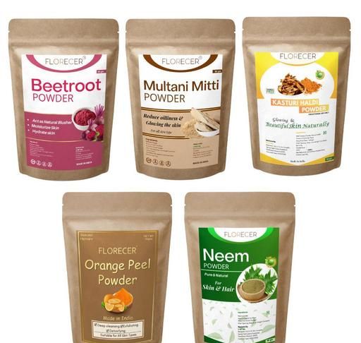 Product Name: Florecer Organic Beetroot, Kasturi Haldi, Neem, Multan Mitti And Orange Peel Powder For Face And Skin Care- Each 50 Gram