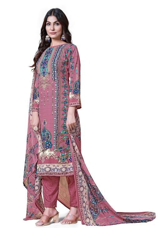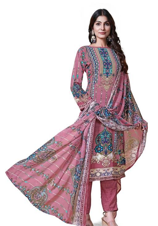 Woman Printed Unstitched layon creap Salwar Suit Material