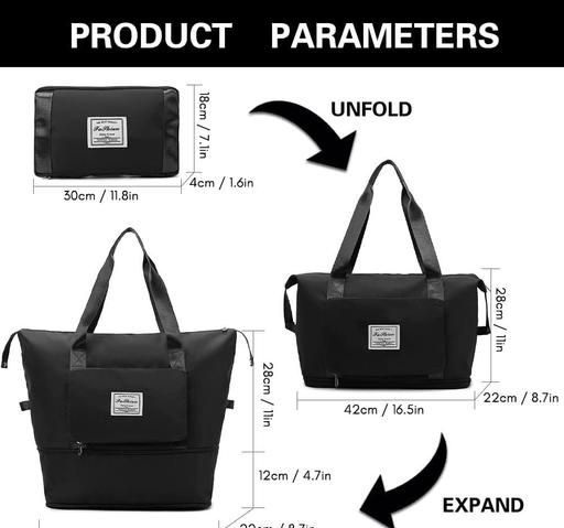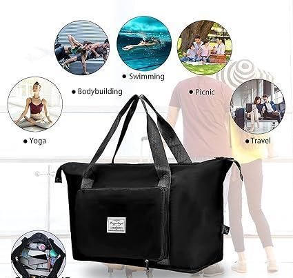 Name: Travel Duffle Bag Expandable Folding Travel Bag for Women, Lightweight Waterproof Carry Luggage Bag for Travel Material: Nylon Print Or Pattern Type: Solid Compartment Closure: Buckle Features: Foldable Net Quantity (N): 1 EXPANDABLE TRAVEL BAG:- Friendly shoulder travel duffle bag for women, 2 levels of expansion. After unfolding, the folding travel bag will rise from 8.6 inches to 12.6 or 16.5 inches. The trolley sleeve fixes the bag to the suitcase to reduce the burden of the journey. You can put your ticket, passport, and mobile phone in your luggage case. WEEKENDER CARRY ON BAG:- Multi-zone design can provide exclusive space for luggage. The main compartment provides effective protection for the laptop, and small luggage is placed in the exclusive compartment to keep the luggage neat and orderly. LARGE CAPACITY GYM BAGS:- Waterproof Oxford fabric prevents sweat and rain from getting wet. Put wet towels and toiletries in a wet bag to keep other items dry. EASY TO STORE:- When the luggage is too heavy, it will be an excellent shoulder overnight bag, freeing the burden of both hands. Folding the tote bag, only the size of a book. Multiple Scenes - Gym, Sports, Travel, Weekend, Luggage, Carry-on Bag, Shopping Bag, Beach Bag, Hiking, and Camping. Suitable for women, men, teens, and big kids, great idea as a personal item for airline travel and emergency spare bag in the suitcase. Country of Origin: India