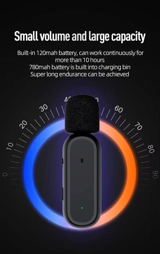 Lasting Working 12 Hours :: This wireless lavalier microphone has a capacity of 80mAh and is charged with a lightning interface. It provides 12 hours of battery life and 1.5 hours of full charge, allowing to experience long battery life.