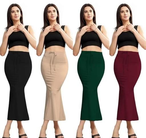 Name: Women's Slim Fit Fancy Saree Shapewear For Women & Petticoat, Skirt For Women, Microfiber Flare Fishcut Lycra Blend Saree Shapewear, Stretchable Petticoat Shaper, Pack Of 4