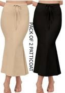 "Fishcut Mermaid Design CREAM AND BLACK Lycra Blend High-Waist Saree Petticoat & Shapewear [SAYA] For Women, Fully Smooth And Stretchable Saree Petticoat With Drawstring, Seamless Saree Shapewear Body Shaping With Side Slit For Easy Movement" || Pack Of 2 ||