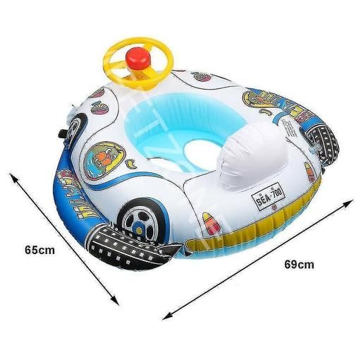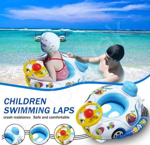 CAR SHAPE UNIQUE DESIGN: The appearance of a cartoon car shaped could improve the interest of baby to learn to swim. Swimming tube has double holder inflation inlet and come with a toy steering wheel with the real sounding horn. Kids swimming tube