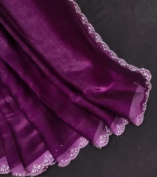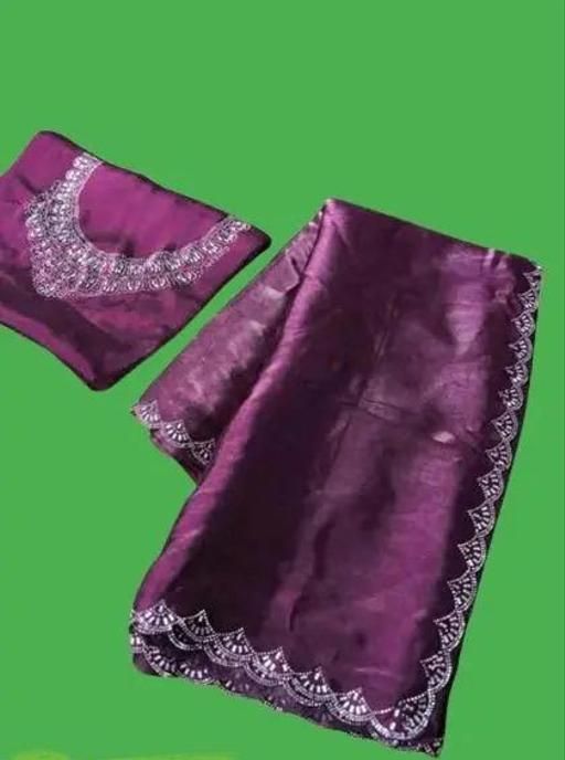Name: Trending Beautiful Fully Diamond Work Jimmy Chu Saree With Same Colour Attractive Blouse Piece