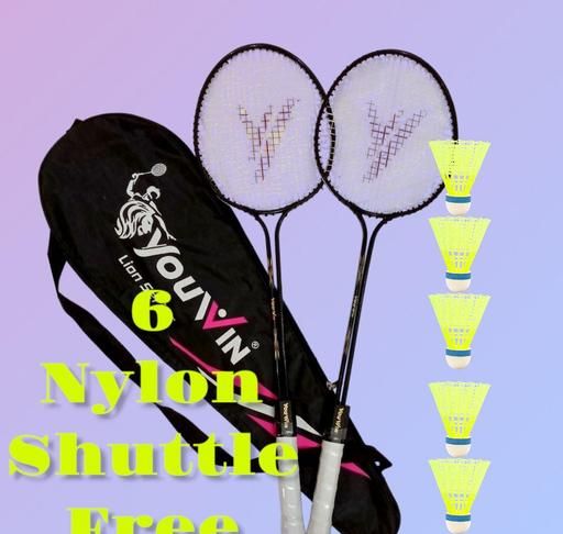 Youwin Double Shaft Badminton Racket with 6 Nylon Shuttle and 1 Bag Freee