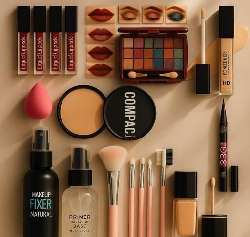 Name: 17 Pcs Combo Pack of Matte Mini Red Edition Lipstick 4, Eyeshadow, 5Pc Makeup Brush, 36H Eyeliner, PUFF, Primer, Fixer, Compact, Foundation,Concealer( Pack of 17 Pcs)