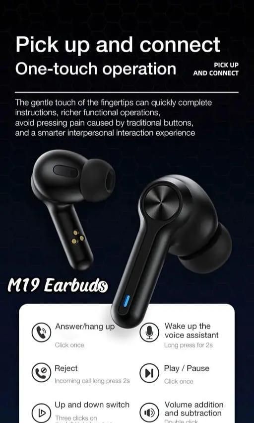 Name: M 19 TWS Bluetooth 5.0 Wireless In Ear Earbuds Touch Waterproof LED Digital Display Bluetooth Headset (Black, True Wireless)