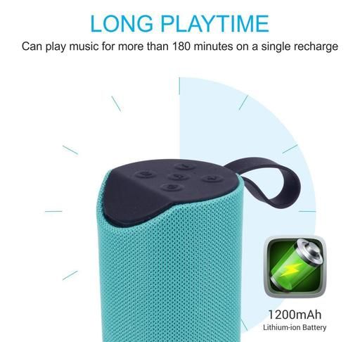 TG-113 (PORTABLE BLUETOOTH SPEAKER) Dynamic Thunder Sound with High Bass 10 W Bluetooth Speaker. Its splash-proof features let you to enjoy your music anywhere indoor/outdoor. You can match it to your style quotient ,eye-catching contrast wherever it goes and easily compliments anyone’s style Portable Wireless Speaker Echo and noise cancelling features for calls Easy to operate; with volume and play/pause buttons for convenience Advanced wireless audio decoder chip, support all wireless devices connected., support Fm radio, you can search area stations directly Soft, clear and dynamic sound all levels clear, Support line in audio input, provide you with computer speakers can be connected to mobile phone tablet computer and TV wireless pairing playing music IN BUILT MIC FOR CALLING