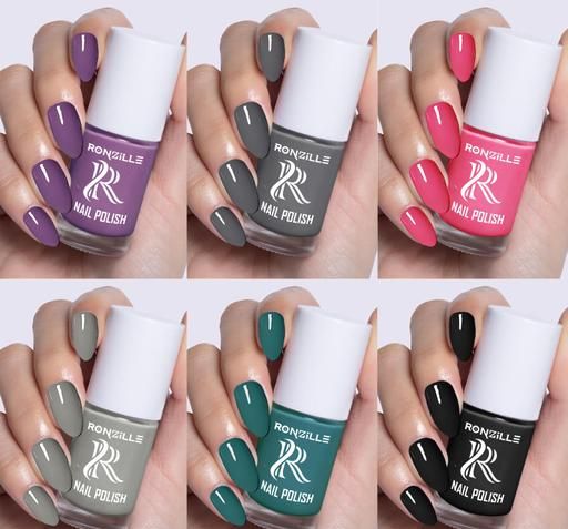 Name: Quick Dry Long Lasting Nail Polish Combo Set Of 6 Product Name: Ronzille Quick Dry Long Lasting Nail Polish Combo Set Of 6 Color: Combo Of Different Color Type: Glossy Net Quantity (N): 6 Make your nails the life of the party with Ronzille Party Pop'ins Color Splash Nail Polish. It comes with a set of six playful and vibrant shades that add a splash of colour and give your nails a new makeover. No chipping just a glossy finish that keeps your nails on point, promising a long-lasting stay. How to use 1. Apply from the centre of the nails and move sideways. 2. Wait for 80 seconds and her it dry. 3. Apply the second coat. Country of Origin: India