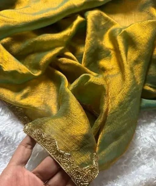 Name: Woman Fashion New Chiffon Beads & Stones With AaFestive Swarovski Diamonds Work Blue Saree for Womenri Work & Mirror Work Saree Collection