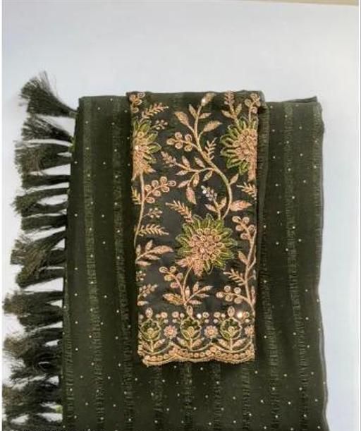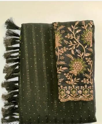 Mehendi Saree Solo Pattern Jalar Chati Embellished With Blouse Embroidered