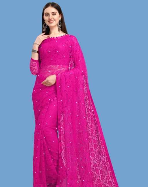Saree Materials Soft Brasso Net Having Flower Design with perl and Lace Border same as look like as Photos Saree 5.5M Blouse 0.8M