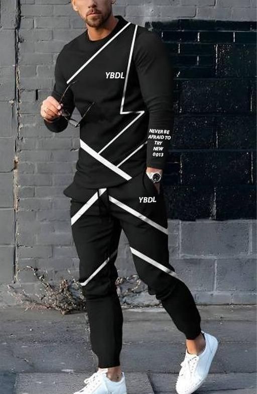 Name: Ramhar Men Printed Black with White Tracksuit Stylish Sportswear Set for Men Gym Wear Workout Wear Running Jogging Fitness Training Casual Daily Wear Shrinkage Free T Shirt and Track Pants Combo