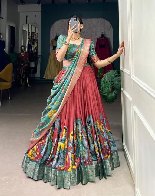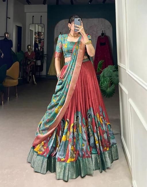 Designer Lehenga Choli Elegant Women’s Lehenga Festive Lehenga Set Indian Bridal Lehenga Kalamkari Lehenga Luxurious Silk Lehenga Patola Print Lehenga Pichwai Print Lehenga Traditional Indian Lehenga Tussar Silk Lehenga