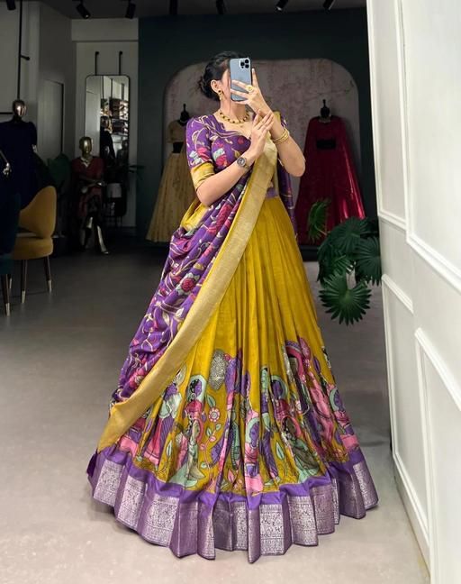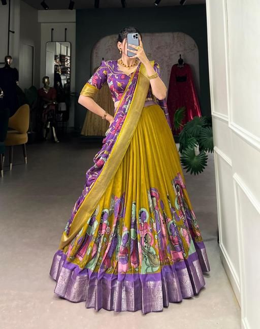 Designer Lehenga Choli Elegant Women’s Lehenga Festive Lehenga Set Indian Bridal Lehenga Kalamkari Lehenga Luxurious Silk Lehenga Patola Print Lehenga Pichwai Print Lehenga Traditional Indian Lehenga Tussar Silk Lehenga