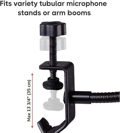 UNIVERSAL COMPATIBILITY: Adjustable screw rotating clamp with scratch-proof gripper can secure to MOST tubular mounting booms or mic stands (Maximum diameter: 1.6inches)