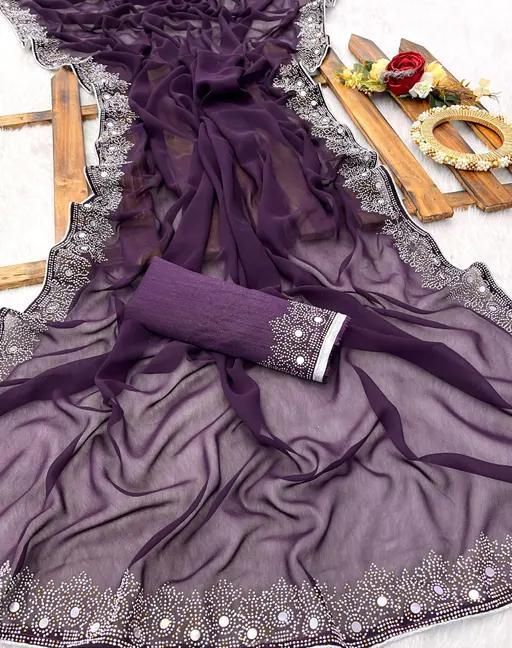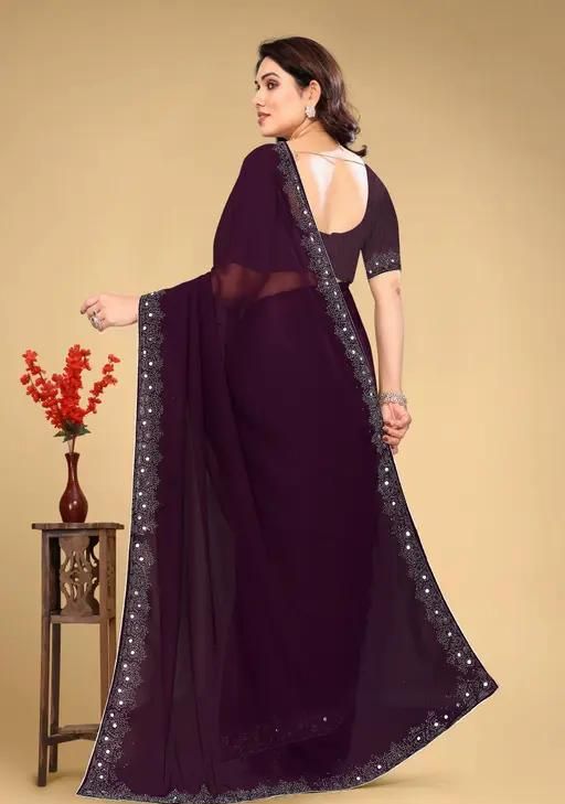 Famous designers tend to give reign to their imagination and create clothes that look interesting and guided by the desire to attract attention. You are bound to make a impressive style statement with this wine pure satin chiffon. Beautified with all synchronized effectively through the pattern and design of the saree. Comes with matching blouse.