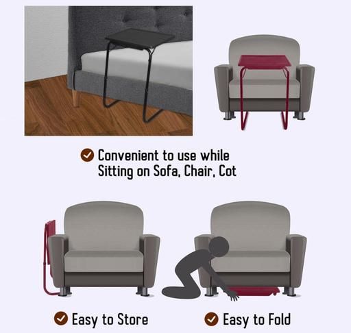 Add a pop of color and functionality to your space with this red adjustable folding tray table. Ideal for use in bedrooms, living rooms, or even outdoor settings, this multi-purpose table is designed for convenience, whether you're working, eating, or relaxing.