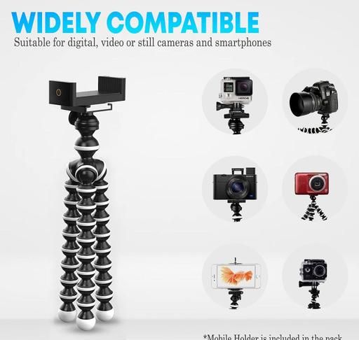 GORILLA TRIPOD brings for you a flexible mini tripod which is a gorilla pod tripod for all mobiles and digital cameras for who love to capture landscapes, sceneries and. So mount your camera anywhere you want and take amazing pictures. It comes with a secure mounting and is portable and lightweight. This Tripod is suitable for DSLR/SLR camera weighing up to 1 kilograms. Suited for DSLR with 18mm-55mm or similar weight lenses. And also action cameras & mobile phones as it come with premium mobile phone holder.