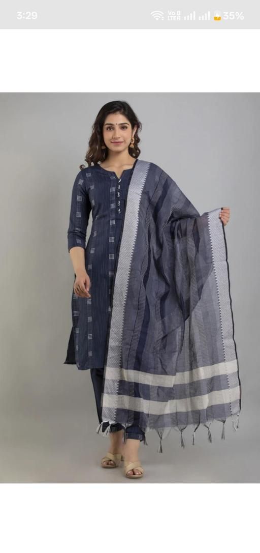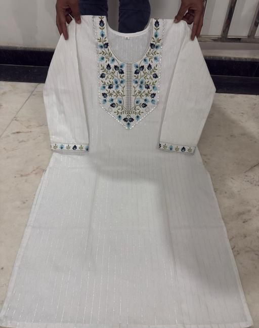 Name: embroidery White kurtis and nave blue kurti Navy blue dupatta and Navy blue pant setpack or 4
