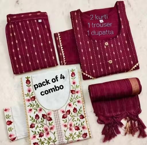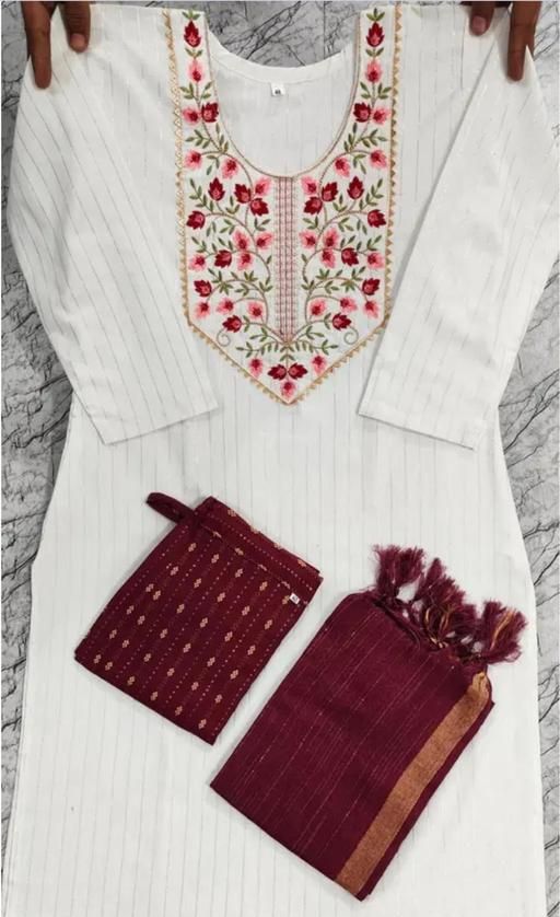 Name: white embroidery maron kurtiand maron dupatta and pant