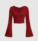 Letest V-neck Notched Flared Sleeve Top
