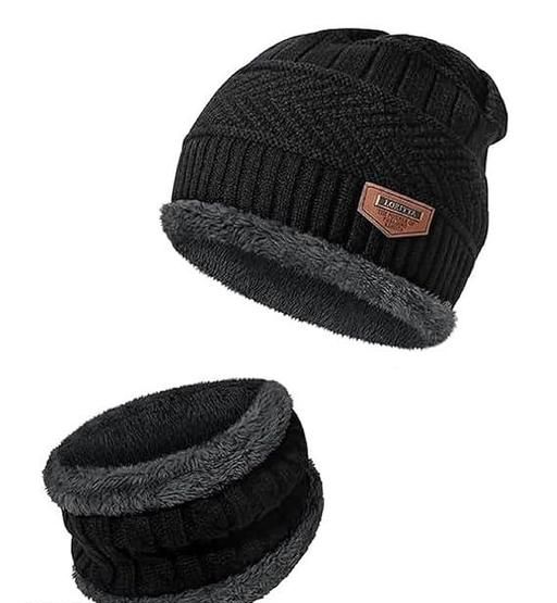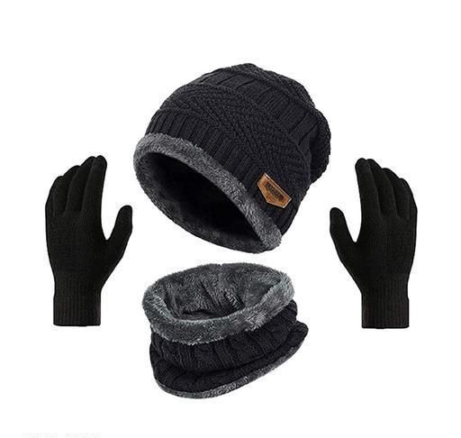 Name: Combo of black Winter woolen Knit Neck Scarf and Warm Beanie Cap Hat with gloves Combo for Men and Women