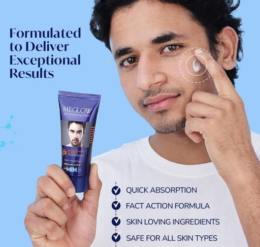 Skin Brightening Cream for Men is the ultimate fairness cream for men that helps you achieve smoother, brighter, and more radiant skin—infused with GlycolicAcid and KojicAcid as they work synergistically to address a variety of skin concerns, offering a powerful yet gentle solution for a clean, even-toned complexion. It is a dark spot remover cream that reduces acne scars, sun spots, or general skin discoloration. Besides this cream combines the Strength of natural ingredients such as Aloe Vera, Cucumber, and Vitamin E to provide deep hydration and nourishment. It targets brown or gray-brown patches or freckle-like spots on the face that reduces Melasma. This cream is a complete bonus packet that gently exfoliates the skin, brightens dull patches, and enhances radiance, leaving you with a smooth, glowing complexion. This brightening cream for men is the perfect way to restore your skin’s natural glow while ensuring a smooth, even tone. Its non-irritating formula makes it ideal for daily use, helping you achieve a more even skin tone without harsh side effects.
