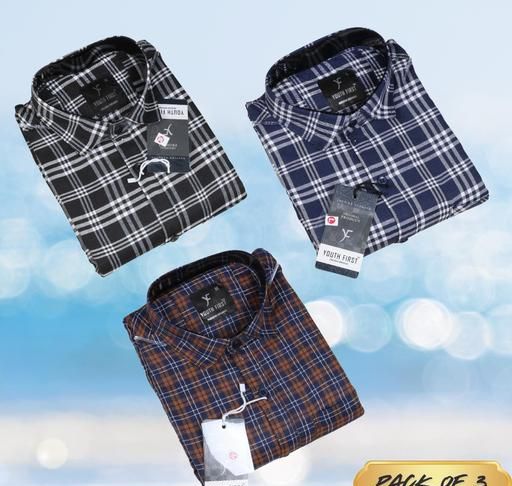 Name: COMBO 3 Fabric: Polycotton Sleeve Length: Long Sleeves Pattern: Checked Net Quantity (N): 3 Sizes: M (Chest Size: 40 in, Length Size: 27 in) L (Chest Size: 42 in, Length Size: 27.5 in) XL (Chest Size: 44 in, Length Size: 28 in) XXL (Chest Size: 46 in, Length Size: 28 in) Country of Origin: India
