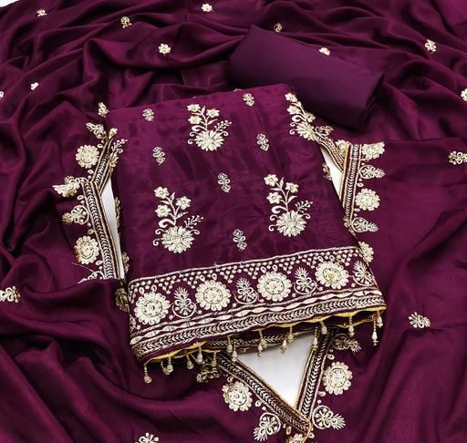 Premium Georgett(CHINON SILLK) Embroidered Unstitched Dress Material for Women