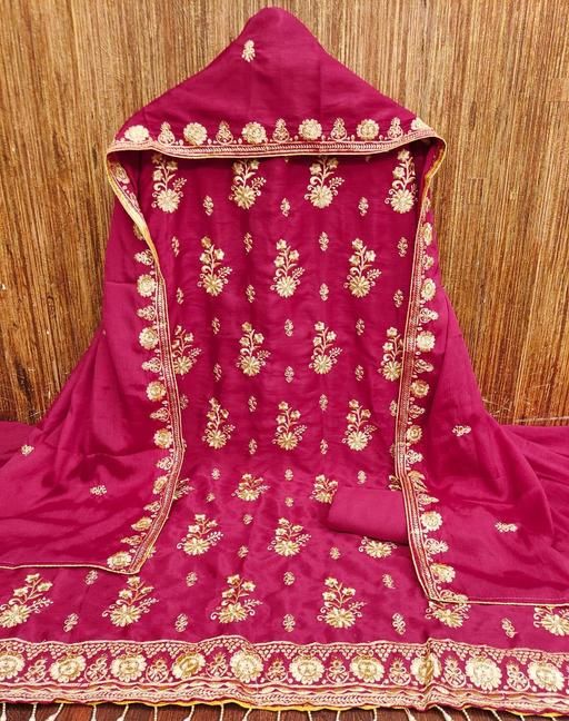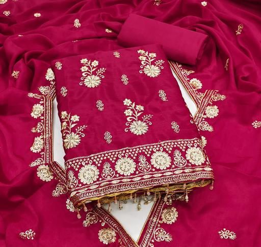 Premium Georgett(CHINON SILLK) Embroidered Unstitched Dress Material for Women