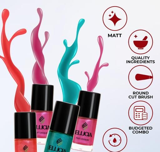 ELLICIA Nail Polish Set of 12 COLORS COMBO - Long-Lasting Chip-Free Formula with Glossy Finish and Quick Drying Coverage for Stunning Nails That Stay Fresh, Vibrant, and Beautiful Matte finish look.