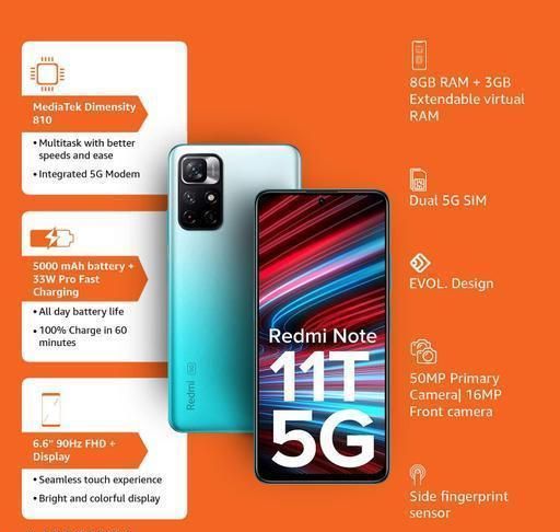 Name: Redmi Note 11T 8GB 128GB Aquamarine Blue- 5G Smartphone