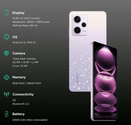Name: Redmi Note 12 Pro 8GB 128GB Stardust Purple- 5G Smartphone