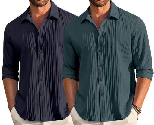 Name: Shirt For Men Fabric: Popcorn Sleeve Length: Long Sleeves Pattern: Self-Design Net Quantity (N): 2 Sizes: XXS (Chest Size: 32 in, Length Size: 25 in) XS (Chest Size: 34 in, Length Size: 26 in) S (Chest Size: 36 in, Length Size: 27 in) M (Chest Size: 38 in, Length Size: 28 in) L (Chest Size: 40 in, Length Size: 28.5 in) XL (Chest Size: 42 in, Length Size: 29 in) Country of Origin: India