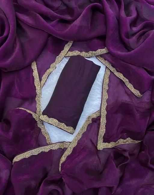 Chiffon Embellished Lace Border Two Tone Designer Saree comes with Unstitched Blouse Piece