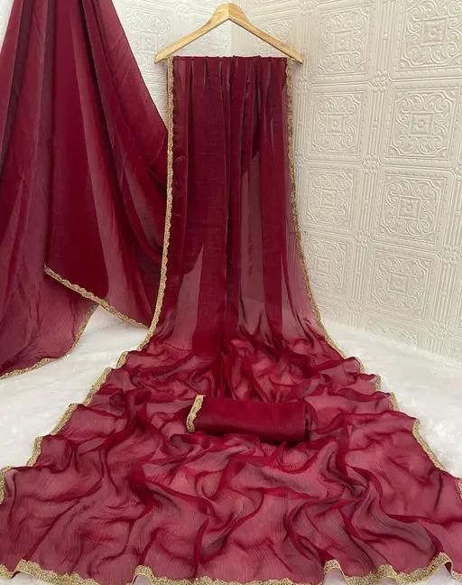 Chiffon Embellished Lace Border Two Tone Designer Saree comes with Unstitched Blouse Piece