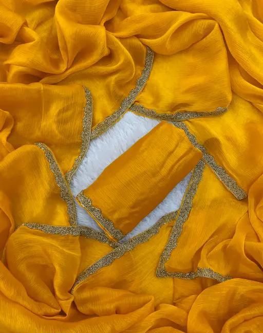 Chiffon Embellished Lace Border Two Tone Designer Saree comes with Unstitched Blouse Piece