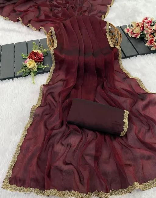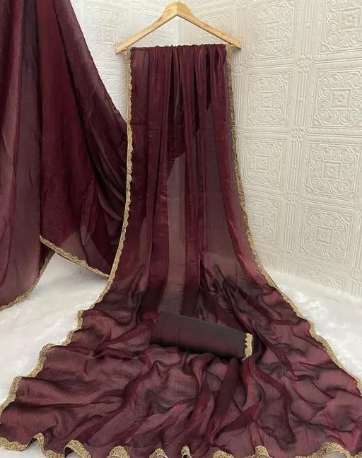 Chiffon Embellished Lace Border Two Tone Designer Saree comes with Unstitched Blouse Piece
