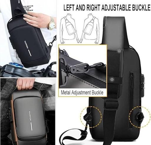 Name: Men's Premium PU Leather Chest Bag with Password Lock & USB Charging - Waterproof, Scratch-Resistant, Multi-Pocket Design for Outdoor