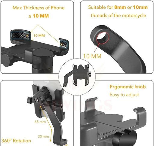 360 Degree Rotation :- 360° Rotatable Design To Make Your Mobile Freely Adjusted To Any Angles Mobile Width Adjuster Screw Nut On Mobile Rack Side To Make The Handlebar Mobile Holder