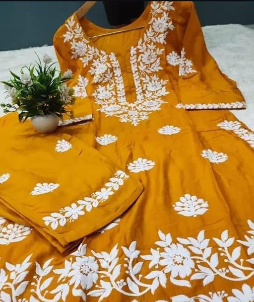 Name: New Embroidered Chikankari Kurta With Plazzo Set With Matching Bottams