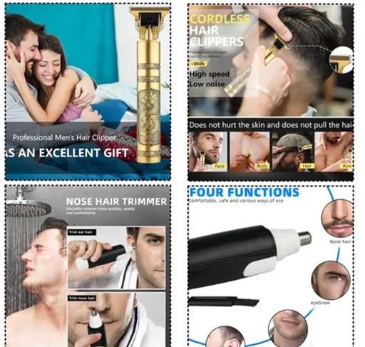 1. PROFESSIONAL HAIR CLIPPER & TRIMMING COMBO: Lichee trimmer men cordless barber kit features a powerful hair clippers and a T-blade outlining trimmer for achieving your desired styles with multiple grooming lengths, well suitable for professional barbers as well as home use.