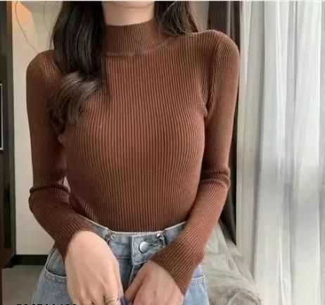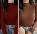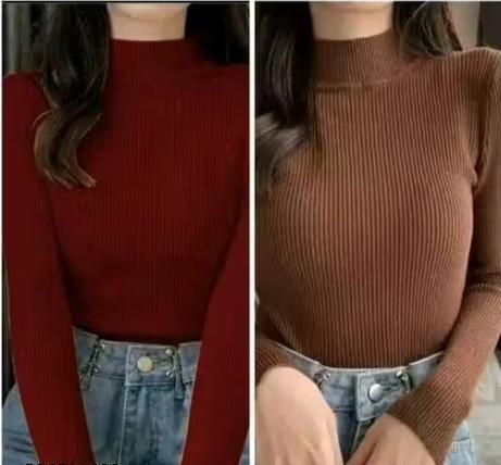 Name: Trendy Ribbed Full Sleeve High Neck Tops for Women (Maroon & Coffee Brown Combo)