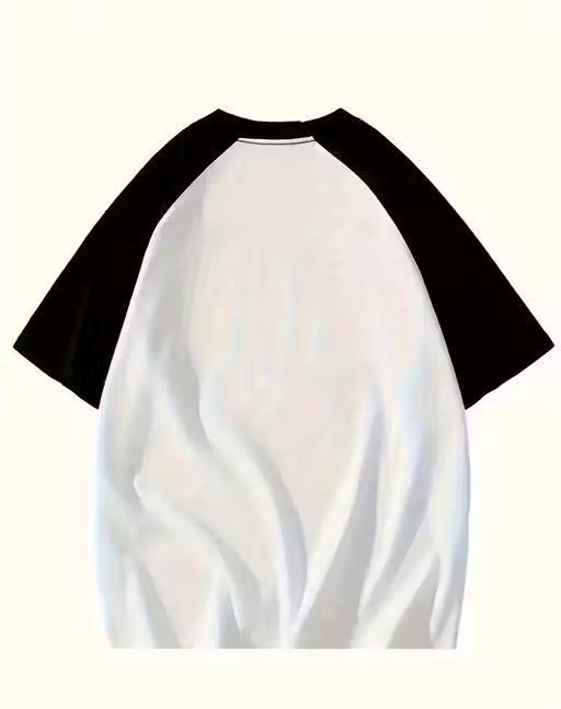 Elevate your casual style with this trendy Graphic Printed Round Neck Oversize T-Shirt in White & Black. Featuring a modern design with bold graphic prints, this shirt is perfect for anyone looking to add a unique touch to their wardrobe. Crafted from soft, high-quality fabric, it ensures all-day comfortable while its relaxed, oversized fit offers a laid-back vibe. The contrast raglan sleeves enhance the sporty appeal, making it a versatile piece that pairs effortlessly with jeans, shorts, or joggers.