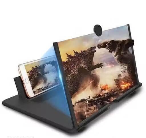 mobile phone holder with video screen amplifier, mobile phone 3d screen magnifier, mobile video screen larger, mobile big screen, mobile screen, home theatre, home projector, cinematic movie viewer, vr boxes, 3d video enhancers, support all phones