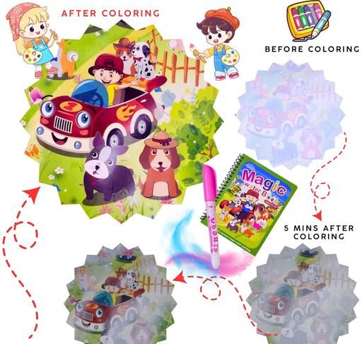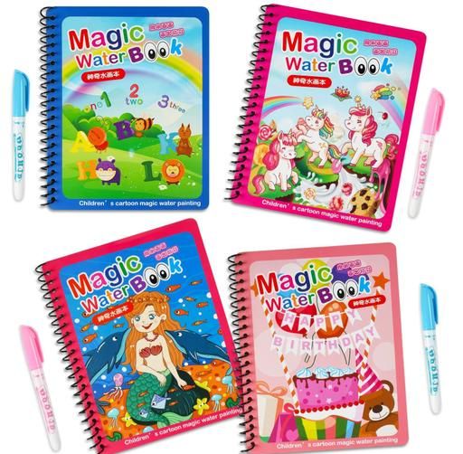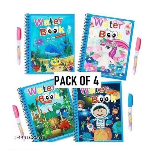 Name: Reusable Magic Water Book Quick-Dry Coloring Book with Magic Pen – Doodle and Painting Board for Children's Educational Drawing Pad (Assorted Colors & Random Designs, Pack of 4)