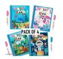 Reusable Magic Water Book Quick-Dry Coloring Book with Magic Pen – Doodle and Painting Board for Children's Educational Drawing Pad (Assorted Colors & Random Designs, Pack of 4)